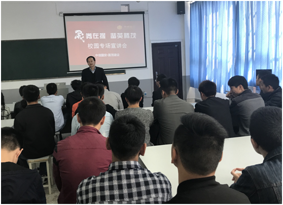 10月31日下午,四川省晟茂建设有限公司人力行政总监李权生、招聘培训主管缪皓洁来到太阳成集团tyc122cc召开专题招聘会,检验校企合作的结晶——15级晟茂订单班的学习成果,进一步加强校企之间的紧密联系,稳定推进校企交流与合作。