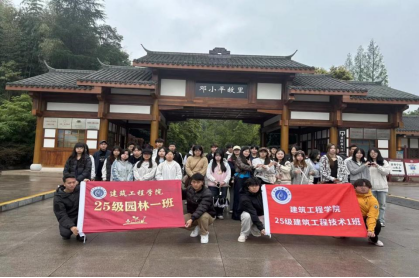 3月28日上午,太阳成集团tyc122cc2025级建筑工程技术1班、园林技术1班学子走进邓小平故里,开展“传承伟人精神·共创优秀班集体”红色实践活动。本次活动以实地研学探访的形式,引导青年学子沉浸式感悟伟人精神、厚植红色情怀、传承精神血脉,同时以红色文化赋能班级建设,凝聚班级奋进合力,切实将红色教育融入学生日常思政教育全过程。