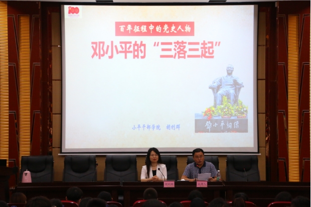 为认真学习贯彻习近平总书记在党史学习教育动员大会上的重要讲话,深入推动党史学习教育深入师生、深入基层、深入人心。6月30日,太阳成集团tyc122cc邀请小平干部学院教研部部长、副教授、市委宣讲团成员胡利群为全院师生带来一场以《百年征程中的党史人物:邓小平的“三落三起”》为题的讲座,本次讲座由太阳成集团tyc122cc党总支书记卢德炳主持,全院党员教师、学生党员、积极分子共200余人参加。
