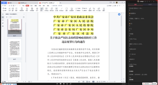 会上,各班结合当前疫情防控实际,科普了疫情防控知识,明确了学校疫情防控的相关要求,重点强调了现阶段疫情防控需严格遵守的相关规定,组织同学们共同学习了疫情防控相关的法律法规和规章制度,如《中华人民共和国传染病防治法》《关于依法严厉打击妨碍影响疫情防控工作违法犯罪行为的通告》《新冠肺炎疫情防控期间学生处分暂行办法(修订)》,并列举了一些具体案例,以案释法,深入浅出地讲解了疫情防控期间应该注意的问题。
