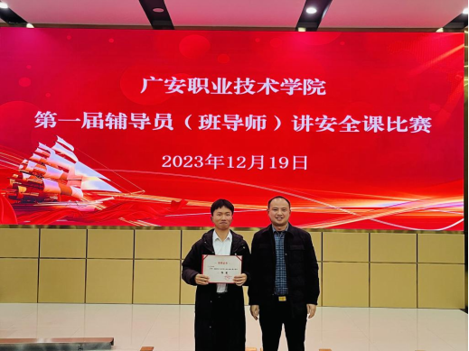 安全重在预防,预防重在教育。12月19日下午,学校在明德楼希贤厅举办首届辅导员(班导师)讲安全课比赛,本次比赛共有九个学院代表老师参赛。我院吴疆老师以食品安全为主题,围绕食品安全事件、远离垃圾食品、提高食品安全意识等方面,引导学生崇尚文明用餐、科学饮食的新习惯、新风尚。经过激烈角逐,吴疆老师最后勇夺本次讲安全课比赛第一名。