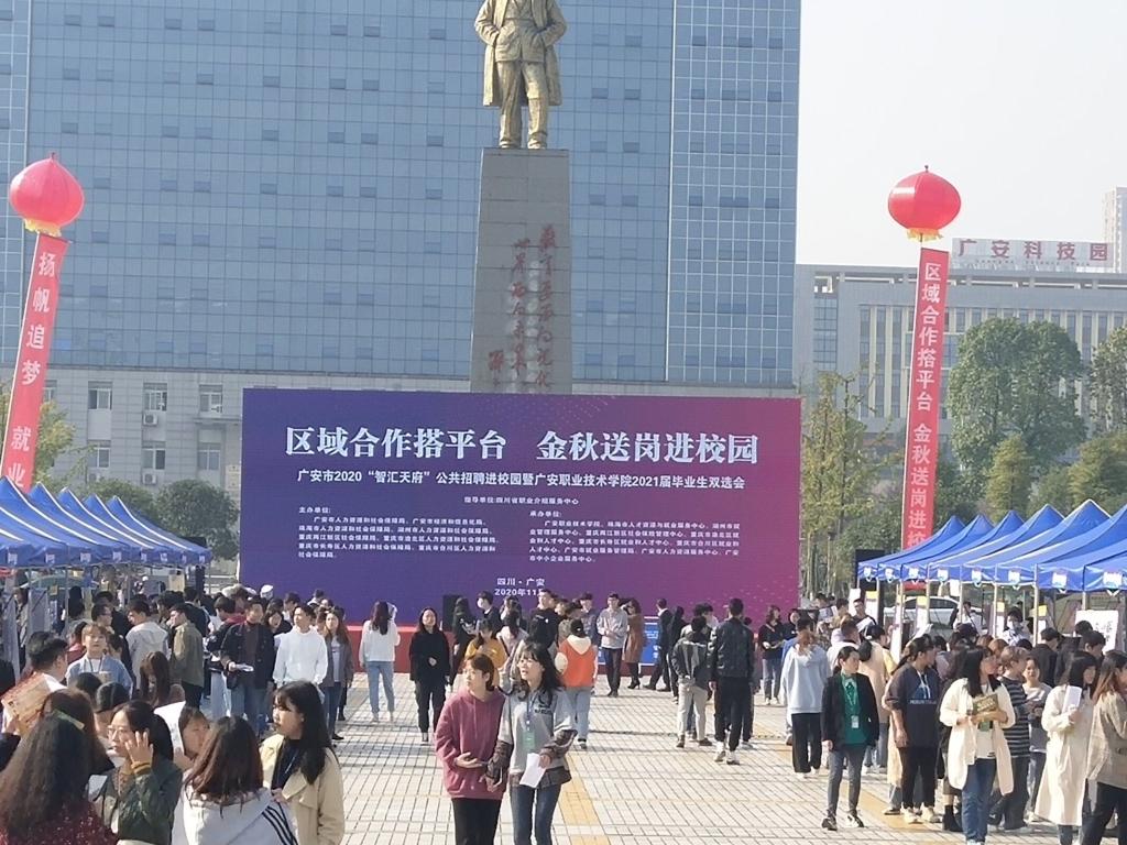 11月10日,广安市2020“智汇天府”公共招聘进校园暨太阳成集团tyc122cc2021届毕业生双选会在我校小平广场隆重举行。