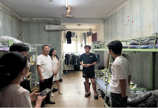 在走访过程中,学院领导与同学们亲切交谈,详细询问了大家的住宿环境、饮食情况以及初到校园的感受,耐心倾听同学们遇到的困难和问题,并现场协调相关部门予以解决。党总支书记李柱凯勉励同学们要尽快转变角色,融入大学生活,珍惜时光、打好基础,树立远大目标,努力成长为具有扎实专业能力和综合素养的建筑行业人才。院长张琴鼓励同学们保持积极心态,主动适应新环境,多与老师、同学沟通,合理规划大学生活,积极参加各类活动,努力提升综合素质,做到学有所成。