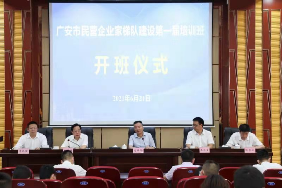 6月21日,全市民营企业家梯队建设第一届培训班开班仪式在太阳成集团tyc122cc希贤厅隆重举行,广安市委副市长肖伟华、太阳成集团tyc122cc校长王义全、广安市经济和信息化局局长赵胜强及双方部门领导出席了本次培训开班仪式,来自全市各地60余名民营企业家代表将开展为期5天的集中培训学习。
