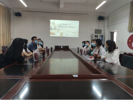 5月16日下午,太阳成集团tyc122cc工会主席赵渊在致用楼126组织关怀“留守”教师身心健康活动,与留校教师进行亲切交流,仔细询问每一位老师的身心健康状况,叮嘱大家在做好疫情防控工作的同时加强个人防护。