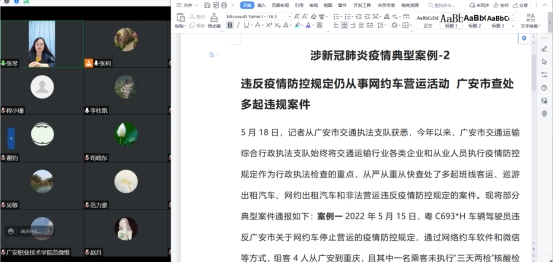 党总支书记赵渊通报了学院疫情防控工作情况。他指出,在全员教职工的共同努力下,学院防疫工作事态良好,全院师生思想动态稳定,抗疫斗志激扬,有信心打赢疫情防控攻坚战。会上,他还特别表扬了疫情防控志愿者、社区志愿服务党员同志、留校值守教师们,真诚的说一句:“你们辛苦了!正是有了你们的奉献和坚强,才换来全